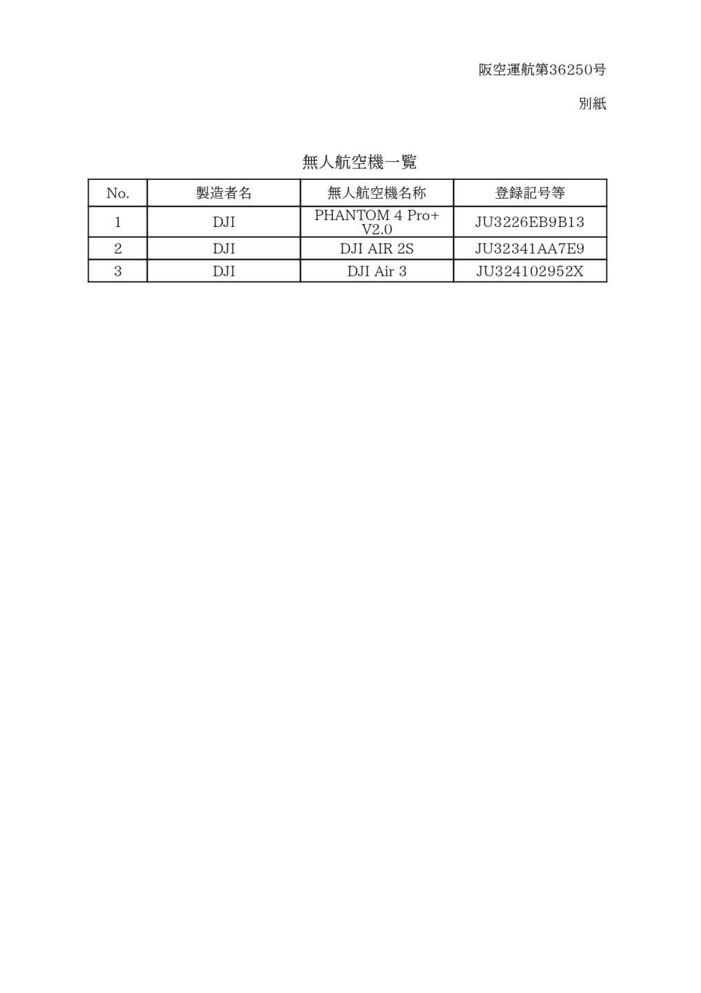 株式会社テイスト > PERMITFIL 02 別紙(機体一覧)_30242924_page-0001 2024.2.21 PERMITFIL 02 別紙(機体一覧)_30242924_page-0001